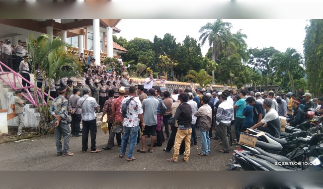 Aksi damai langsung dibuka di depan Kantor Bupati Kabupaten Tanggamus, dalam tuntutannya menuntut: