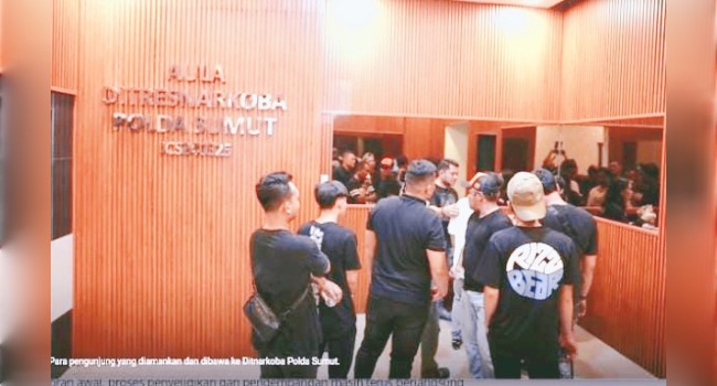 Sebanyak 35 orang diamankan dari Cafe Dukuh Indah oleh tim Ditresnarkoba Polda Sumatera Utara Selasa (12/08/2025). Dari hasil tes urine, 27 orang dinyatakan positif mengandung zat metamfetamin dan amfetamin.
