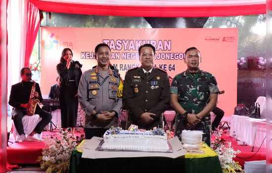 Kapolres Bojonegoro beserta rombongan memberikan kejutan dengan membawakan tumpeng dan kue ulang tahun yang disambut langsung oleh Kepala Kejaksaan Negeri (Kajari) Bojonegoro, Muji Martopo berserta jajaran.