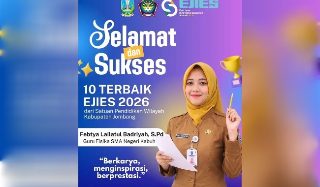 Jejakkasus.Tv.Com | Jombang -Jatim – Sekolah Menengah Atas Negeri (SMAN) Kabuh kembali mempertegas posisinya sebagai wadah inovasi pendidikan di Kabupaten Jombang. Kali ini, prestasi membanggakan datang dari salah satu tenaga pendidiknya, Febtya Lailatul Badriyah, S.Pd., yang berhasil menembus jajaran 10 besar dalam ajang bergengsi East Java Innovation and Education Service (EJIES) 2026.