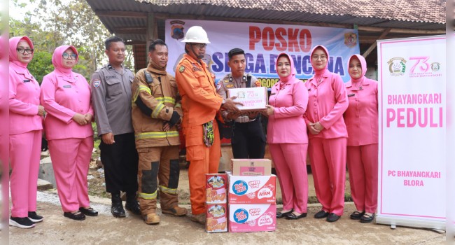 BLORA l Jejakkasustv.com – Bencana kebakaran sumur minyak ilegal di Desa Gandu, Kecamatan Bogorejo, Kabupaten Blora, mendapatkan perhatian serius dari kepolisian. Sebagai bentuk kepedulian, Kapolres Blora AKBP Wawan Andi Susanto, S.H., S.I.K. M.H., bersama Ketua Bhayangkari Cabang Blora Ibu Retno Wawan Andi, turun langsung untuk menyalurkan bantuan kepada para korban dan relawan yang bertugas di lokasi.