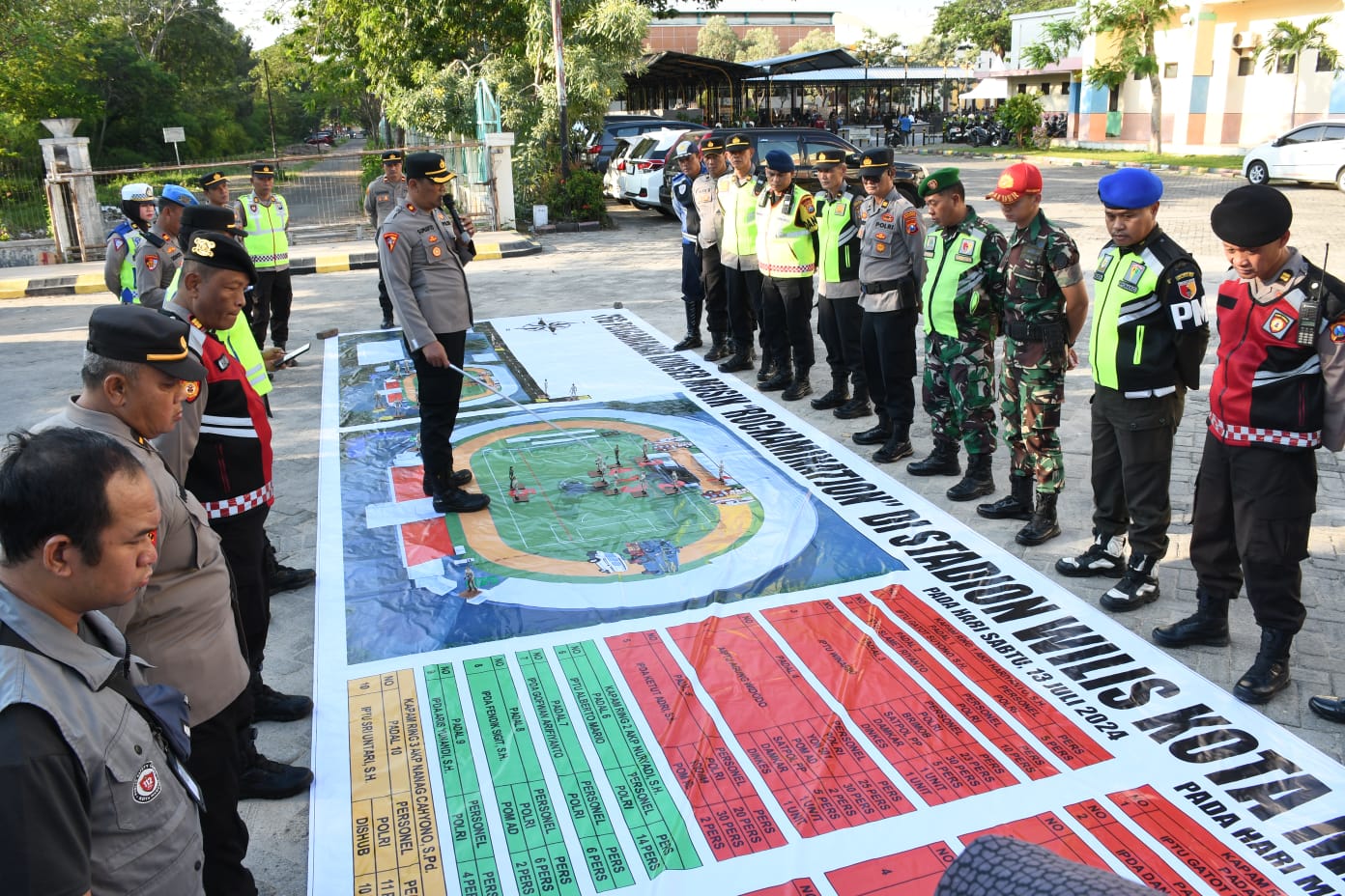KOTA MADIUN I jk – Kapolres Madiun Kota, AKBP Agus Dwi Suryanto, S.I.K., M.H., memimpin Apel Persiapan Pengamanan untuk konser musik “ROCKAMINATION FESTIVAL” yang akan menampilkan Band Rock Ternama Indonesia seperti Band SID, Bomerang Reload, Burgerkill dan Band Lokal di Stadion Wilis, Kecamatan Kartoharjo, Kota Madiun, Minggu (14/7/2024) Sore.