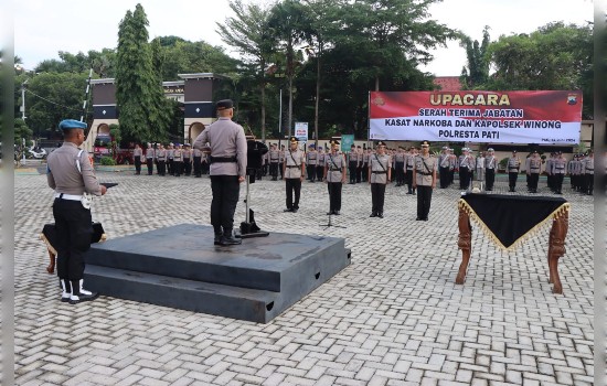Sertijab tersebut dipimpin oleh Kapolresta Pati Kombes Pol Andhika Bayu Adhittama, Pejabat yang menjalani serah terima jabatan tersebut adalah Kasat Res Narkoba Polresta Pati dari Kompol Edi Sutrisno kepada Kompol Agus Budi Yuwono, dan Kapolsek Winong Polresta Pati dari AKP Eko Pujiyono kepada AKP Gandhi Soeprijanto.