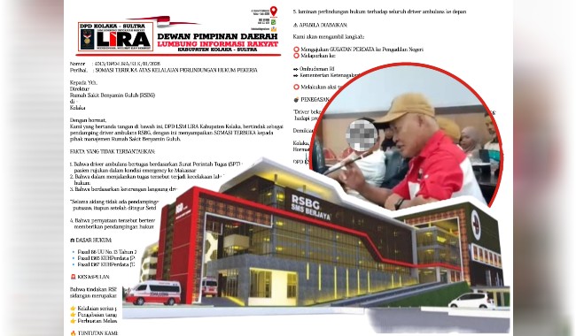Kolaka | 25 Maret 2026 – DPD LSM LIRA Kabupaten Kolaka menanggapi pernyataan pihak Rumah Sakit Benyamin Guluh (RSBG) yang mengklaim telah memberikan pendampingan hukum kepada driver ambulans yang kini menjalani hukuman 3 tahun penjara. Berdasarkan keterangan langsung dari driver sebelum menjalani masa penahanan, fakta yang terungkap justru berbeda.