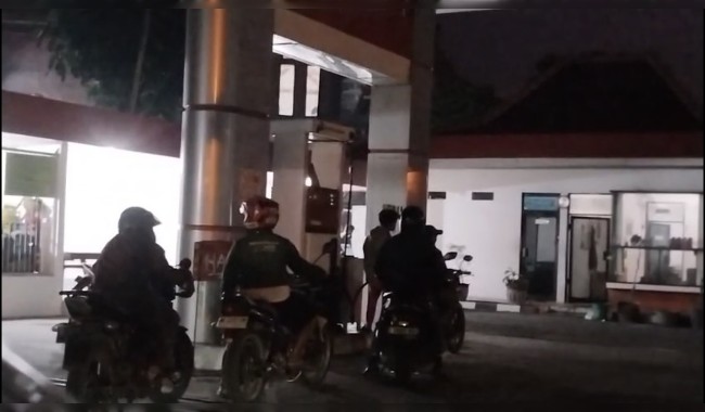SPBU 54. 613.05 Jl. Totok Kerot No.2, Lawang, Trowulan, Kec. Trowulan, Kabupaten Mojokerto, Jawa Timur, dipergoki Lembaga Swadaya Masyarakat (LSM) Generasi Muda Indonesia Cerdas Anti Korupsi (GMICAK) diduga sedang melakukan penyimpangan Hukum, Operator mengaku bernama Slamet sedang melayani puluhan sepeda motor jenis Suzuki Thunder, Mega Pro secara bolak balik, sementara itu di depan di pasang papan Pertalite habis dan Lampu dimatikan, Selasa 16 September 2025 pukul 04.30 Wib.
