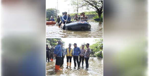 Bupati Sidoarjo H. Subandi beserta Kapolresta Sidoarjo Kombes Pol Christian Tobing dan Dandim 0816 Sidoarjo Letkol Inf Dedyk Wahyu Widodo melakukan Sidak kelokasi banjir.