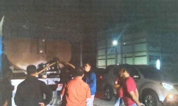 Petugas mendapati solar subsidi sedang dipindahkan ke tangki di sebuah fuso bernomor polisi BD-8498-IU bertuliskan PT Evron Raflesia Energi.