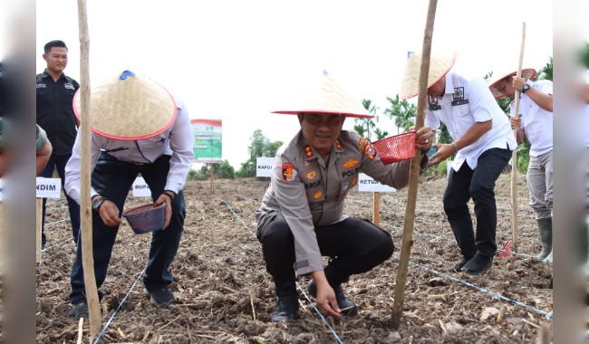 Kapolres Indragiri Hilir AKBP Farouk Oktora, S.H., S.I.K. menyampaikan bahwa kegiatan ini merupakan wujud nyata sinergi antara Polri, TNI, pemerintah daerah, dan masyarakat dalam mendukung ketahanan pangan nasional.