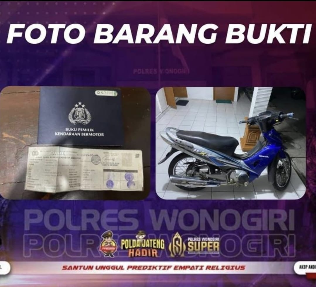 WONOGIRI I jk- Polres Wonogiri berhasil mengamankan seorang pria yang diduga keras terlibat dalam tindak pidana pencurian kendaraan bermotor roda dua di Dsn Ngawen Desa Sendang Ijo Kec Selogiri kab Wonogiri. Penangkapan ini terjadi pada Jumat, 5 Juli 2024, setelah adanya laporan dari seorang korban bernama Nur Hariyanto.