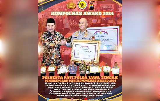 Polresta Pati – Polda Jateng | jejakkasustv.com- Malam penganugerahan Komisi Kepolisian Nasional (Kompolnas) Awards 2024 sukses digelar. Penghargaan diberikan kepada setiap kelompok dari tingkat Mabes hingga Polsek. Salah satunya adalah Polresta Pati.