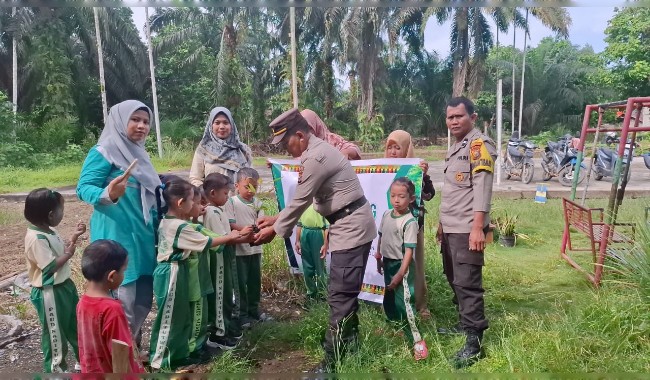 Kapolsek Kemuning, KOMPOL A. Raymon Tarigan, S.Sos., M.H., memimpin langsung kegiatan tersebut. Turut hadir dalam kesempatan itu Ps. Kanit Binmas Polsek Kemuning IPTU Saliman, Bhabinkamtibmas Desa Teluk Jangkang Aipda Rustam, S.H., Kepala Sekolah PAUD Tut Wuri, para majelis guru, serta para siswa-siswi PAUD yang tampak antusias mengikuti kegiatan penanaman pohon.