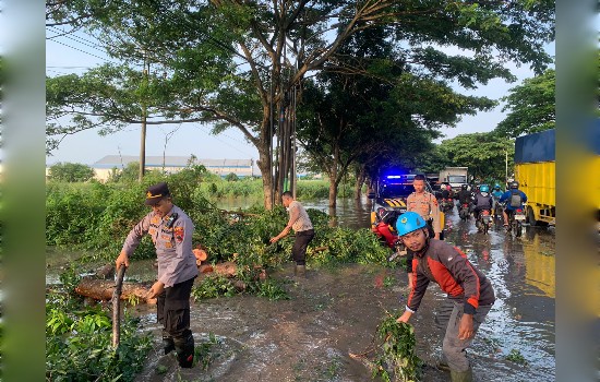 Respons Cepat Cegah Kemacetan, Polisi Evakuasi Pohon Tumbang Menutup Jalan Pantura Pati – Juwana