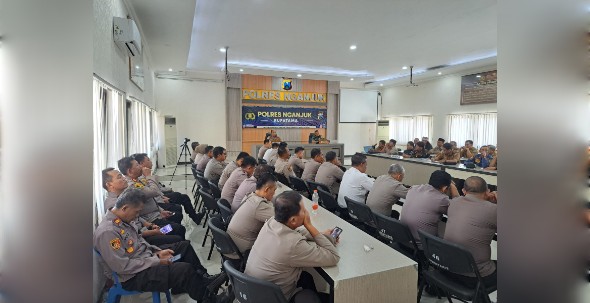 Nganjuk l Jejakkasustv.com – Dalam rangka kesiapan pengamanan kegiatan pengesahan warga baru Ikatan Kera Sakti (IKSPI) di Kabupaten Madiun, Polres Nganjuk menggelar rapat koordinasi (rakor) eksternal bersama Forkopimda dan sejumlah instansi terkait di Rupatama Polres Nganjuk, Senin (28/7/2025).